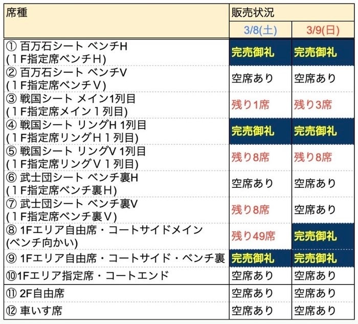 ⬛︎ 第24節のチケット販売状況( 3/7(金)時点 )