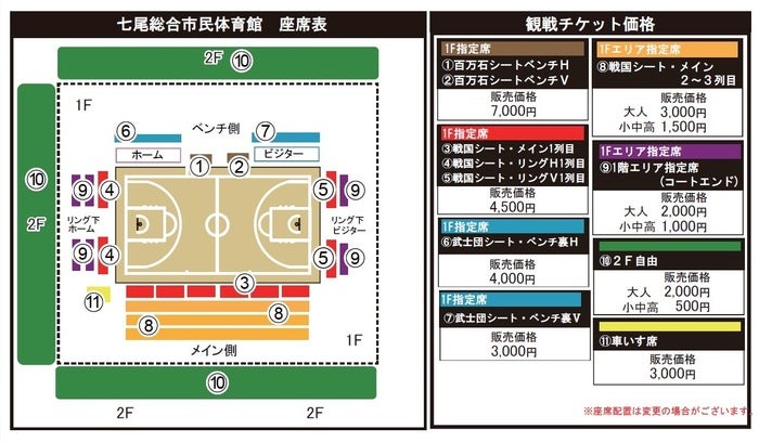 なお、試合終了後( コート1周時 )に選手とハイタッチができるお席となっております。試合後の選手たちを皆様の温かい拍手やハイタッチでお見送りください。
