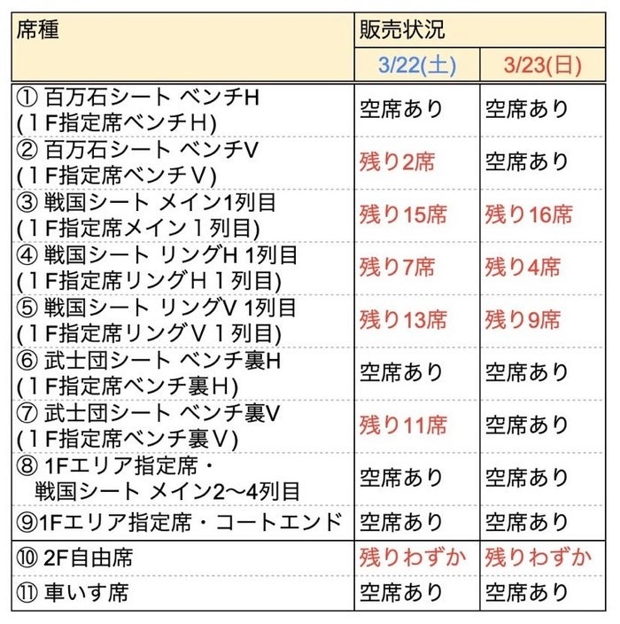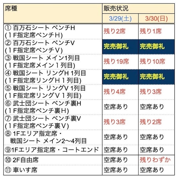 ⬛︎ 第27節のチケット販売状況( 3/14(金)時点 )