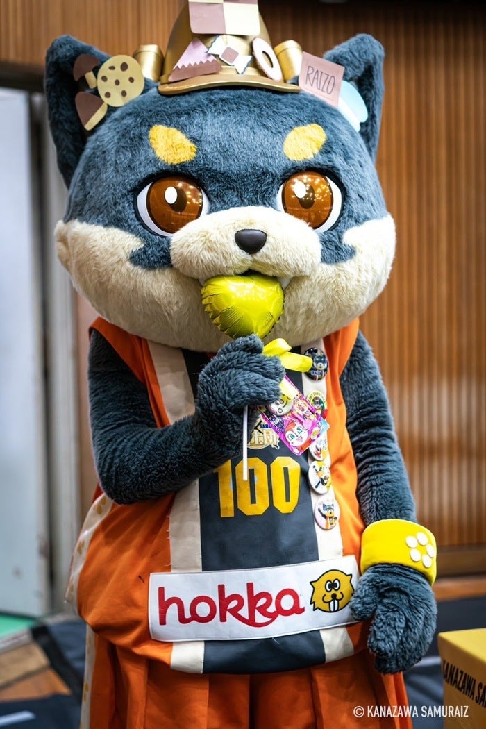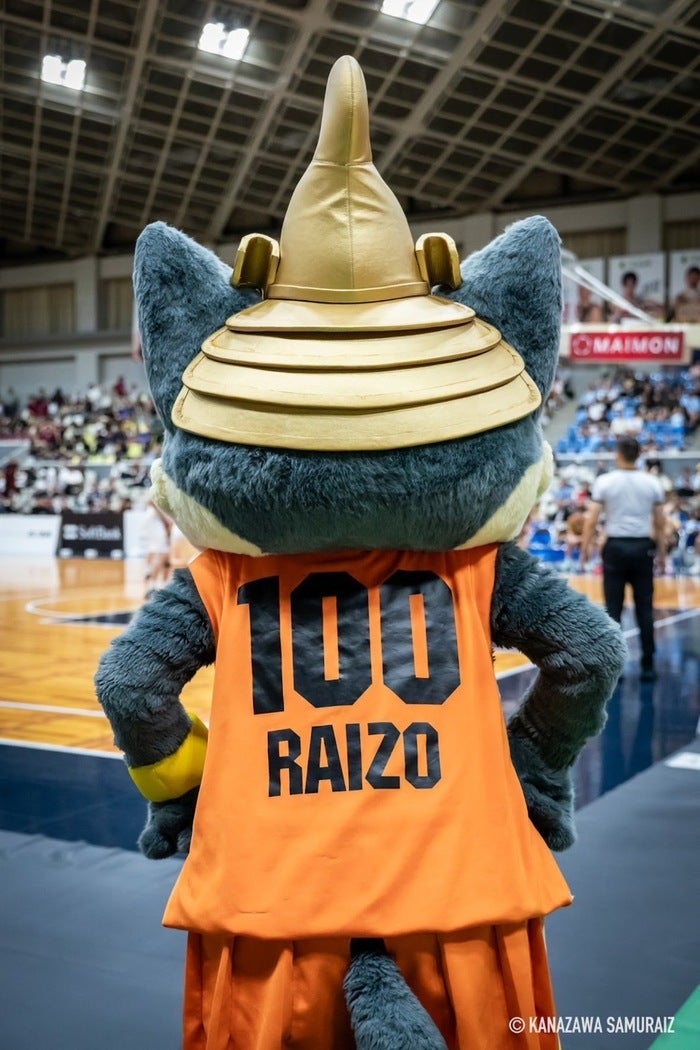 金沢武士団に所属する公式マスコットRAIZO( ライゾウ )。天文7年生まれの古株。初回のマスコットオブザイヤーで最下位を獲得するも、逆境にめげずワンダフルな快進撃を見せ、翌年には8位にまでランクアップした逸話を持つ。コウキ( #2 東野恒紀 )としか会話ができない老犬。コウキはライゾウ語が分かるらしく、選手みんなと喋りたいけど、語学上、コウキとしか喋れなくて常に悔しい思いをしている。選手たちがシュートの打ち方教えてくれたけど、リングに当たる気配なし。バスケットセンスZERO。あとは、何か頑張ると何か失敗する出来の悪いイヌです。でも、ブレイクダンスは誰にも負けない自信がある。B31位はボクじゃ!🐶やる気だけは一丁前。