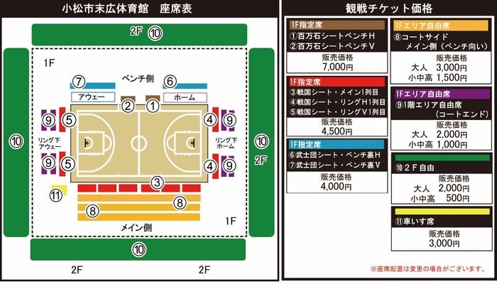 第27節は今シーズン最後の小松開催です。1F席は完売席が出ており、残りわずかとなっております。まだご購入いただけていない方は、ぜひ1F自由席をご購入いただき、選手により近いお席で試合観戦をお楽しみください。ゲンの良い小松HOMEで再び勝利を掴むべく、皆様の熱い声援が必要です。強豪TUBCを相手に、諦めず最後まで全力で戦いますので、ぜひ試合会場に足を運んでください。