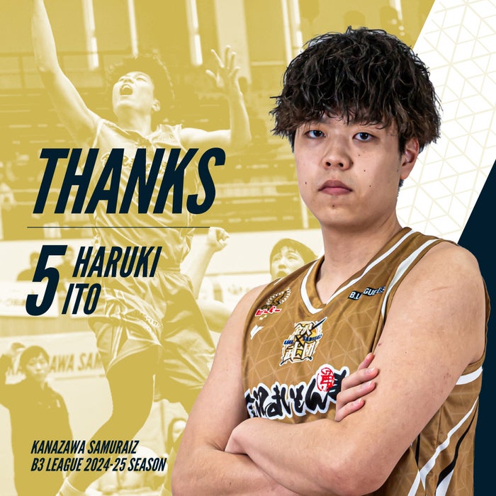 この度、金沢武士団では#5 伊藤治輝 特別指定選手( アマチュア契約 )が、2025年4月30日(水)をもって活動を終了することとなりましたのでお知らせいたします。