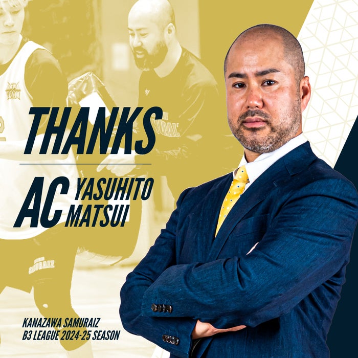 この度、金沢武士団では松井泰仁アシスタントコーチとの契約を2025年4月18日(金)付けで解除し、退団することとなりましたのでお知らせいたします。