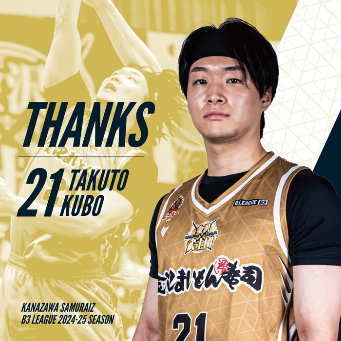 この度、金沢武士団では#21 久保拓斗 選手との契約が2025年6月30日(月)をもって満了となり、退団することとなりましたのでお知らせいたします。なお、本日5月7日(水)15:00付けでB.LEAGUE自由交渉選手リストへ公示いたしました。