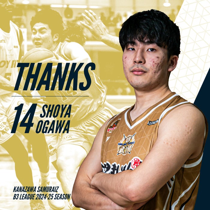 この度、金沢武士団では#14 小川翔矢 特別指定選手( アマチュア契約 )が、2025年4月30日(水)をもって活動を終了することとなりましたのでお知らせいたします。