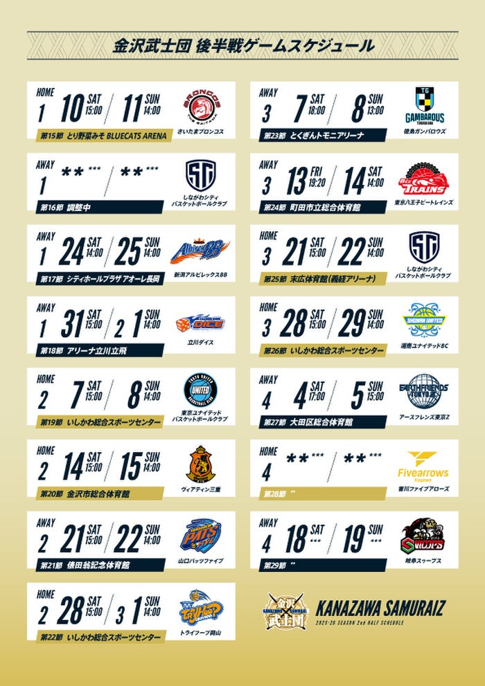 日頃より金沢サムライズへの温かいご声援を誠にありがとうございます。