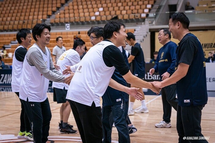 普段、選手達がプレーしているコートで日頃よりサムライズを支えてくださっている企業の方々に実際にプレーをし、バスケの楽しさを体感していただくことや、もっとバスケを好きになってもらおうと、「いしかわバスケの日」にちなんだ企画です。