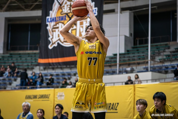 この試合のM.O.M(マン・オブ・ザ・マッチ)は#77 松尾。14得点5スティールと攻守に活躍しただけではなく、チームを鼓舞するプレーで今日の試合の中心となった。