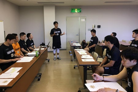 チームミーティングで2018-19シーズンへの想いを語る与那嶺キャプテン。