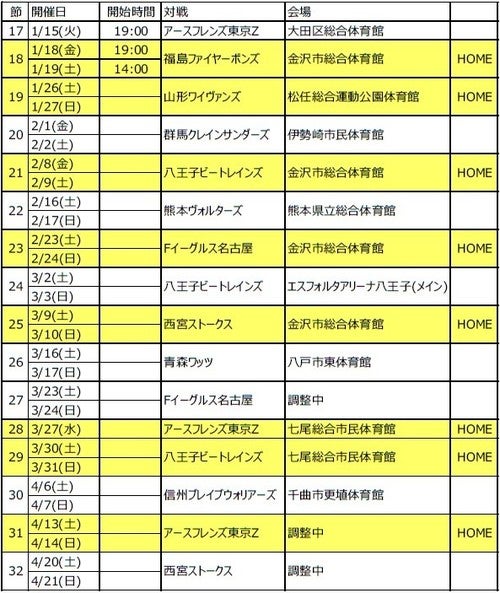金沢武士団では、2018年9月から始まる2018-19シーズンの、全試合日程が決定いたしましたのでお知らせいたします。