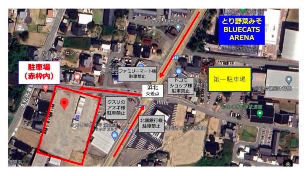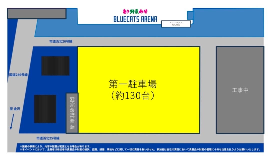 ・金沢武士団ホームゲーム専用ではありませんので、駐車場の利用ルールに則ってご利用ください。