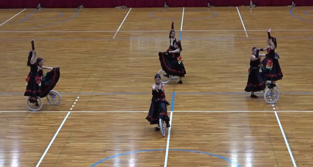 美しい技と表現力を競う、体育館のフィギュアスケートと呼ばれる一輪車演技。コツコツ練習しているとある日急に乗ることができる一輪車。頑張る気持ちや忍耐力、美しい姿勢を育んでくれる一輪車。さらに心を合わせて一緒に演技することで、他者理解や思いやりにも繋がっていく素晴らしさを、見る人に伝えたく日々活動しております。