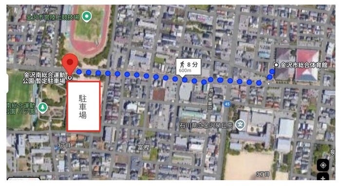 ・金沢市総合体育館までは徒歩約8分程度かかります。