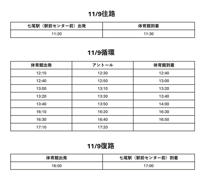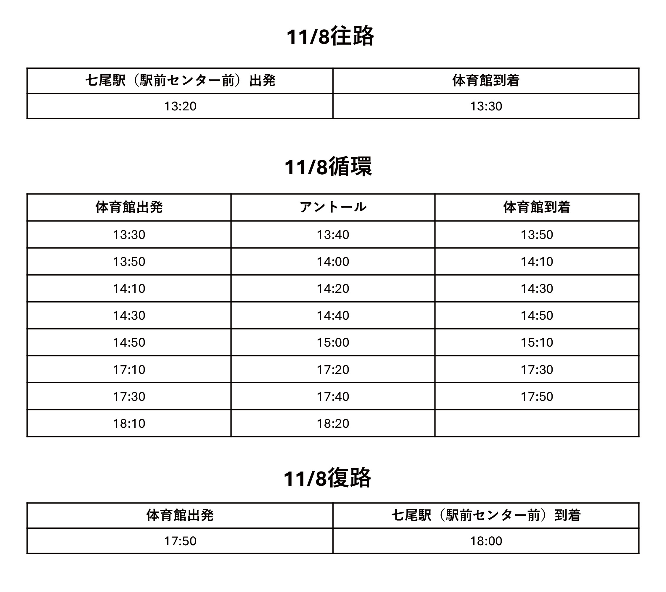 ※ 試合終了後の時間は運行しておりませんので、お帰りの際は路線バス等、他の交通機関をご利用ください。