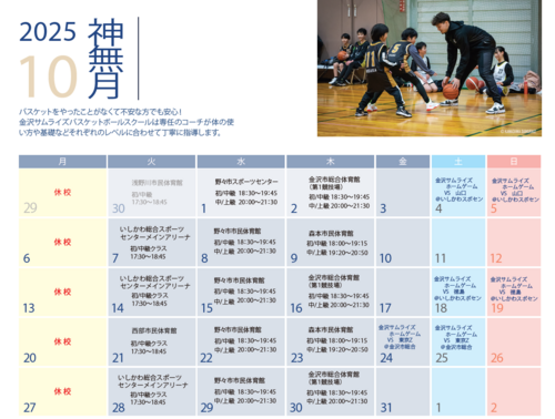 2025年10月第3・4週の練習日程のスケジュール表を掲載しました。