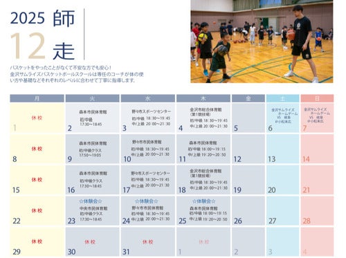 2025年12月第4週及び1月第2週の練習日程のスケジュール表を掲載しました。