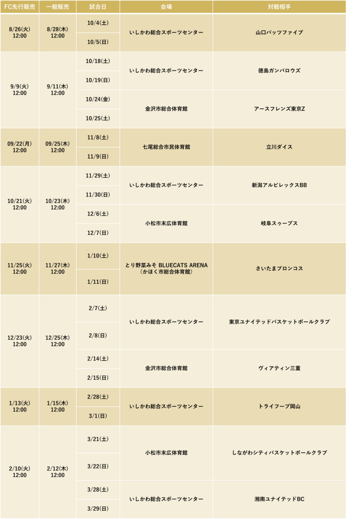2025-26シーズン、金沢サムライズホームゲームのチケットを購入するには、