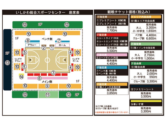・未就学児は保護者の膝上での観戦に限り無料です。
