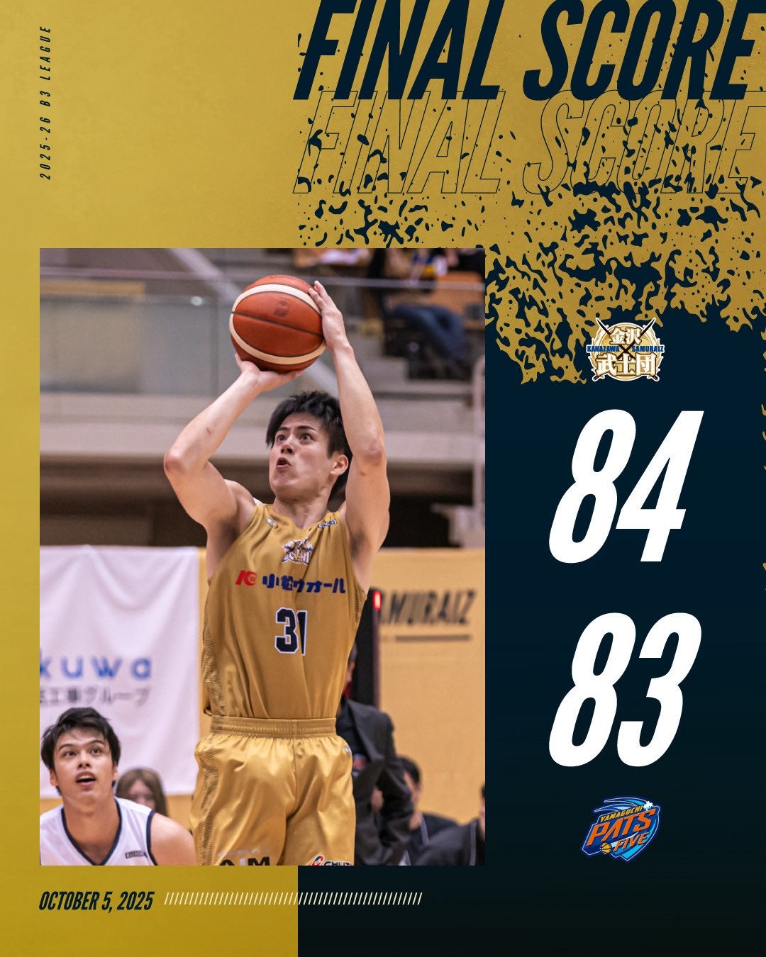 2025-26 SEASON 第2節 VS 山口パッツファイブ ゲームレポート